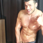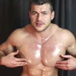 I oil up my pec’s, delt’s, arm’s & ab’s and he has to stroke it all.