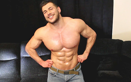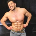 After some flexing, some showing off I sit down and loosen the jeans from around my cock.